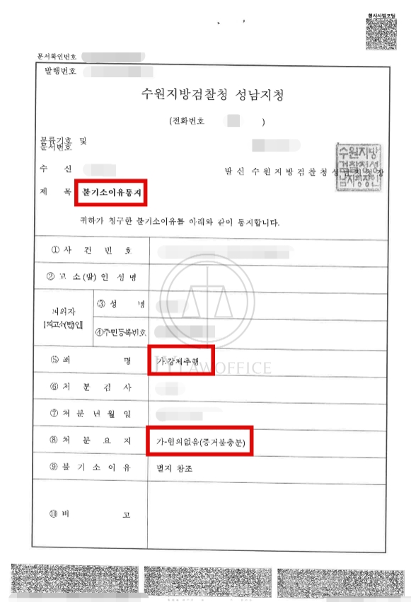 통신매체이용음란 - 기소유예성범죄[성공사례] 통신매체이용음란 - 기소유예 1. 사건 개요 본 사건 의뢰인은 피해자와 모바일 랜덤 채팅 애플리케이션을 통해 알게 되었습니다. 두 사람은 지속적인 대화를 통해 사이가 가까워졌고 농담을 주고받던 중 의뢰인은 피해자에게 성적인 농담을 전송하였습니다. 해당 메시지에 성적 수치심을 느낀 피해자는 신고를 하게 되었고, 의뢰인은 수사기관으로부터 출석하라는 요구를 받았습니다. 한순간에 경찰 조사를 받아야 할 처지에 놓인 의뢰인은 걱정스러운 마음에 JY법률사무소를 찾아 조력을 받기로 결심하였습니다. 2. 변호인의 조력 ▷ 사건 발생의 경위 및 고소 내용을 정확히 파악 의뢰인과 상세한 상담 내용을 토대로 기본적인 혐의 사실은 파악했으나 정확히 어떠한 내용으로 신고가 된 것인지 담당 수사관과의 커뮤니케이션 및 정보공개 청구 등을 통해 구체적인 사실관계를 파악하여 객관적인 혐의 사실을 특정하였습니다. 이를 토대로 의뢰인 상황에 맞는 대응전략을 세워 불리한 처분이 나오지 않도록 최선을 다하였습니다. ▷ 경찰 조사 예상 질문에 대한 충분한 대비 및 피해자와 합의 성사 본 변호인은 형사 사건에 연루된 것이 처음이었던 의뢰인이 무사히 경찰 조사를 마칠 수 있도록 조사 시 예상되는 질문에 대한 답변을 숙지할 수 있도록 안내했으며, 이러한 성범죄에 있어 진술의 일관성은 결과에 큰 영향을 미치기 때문에 의뢰인이 불리한 진술을 하지 않도록 본 변호인은 수사 초기 단계부터 동행하여 밀착 변호하여 진술에 힘을 보탰습니다. 또한 피해자와의 합의 성사 여부도 처벌 수위에 영향을 미치기 때문에 이를 잘 알고 있는 본 변호인은 의뢰인을 대신해 조심스럽게 피해자와 소통을 하고 원만히 합의할 수 있었습니다. 이를 바탕으로 ▲ 의뢰인은 형사 처분을 받은 적이 없으며, ▲ 의뢰인이 자신의 잘못을 인정하고 깊이 반성하는 점, ▲ 피해자가 의뢰인에 대한 처벌을 원하지 않는다고 의사를 전달한 점, 등을 통해 의뢰인에게 재범의 여지가 없음을 적극적으로 피력하였습니다. 3. 결과 이와 같은 변호인의 노력에 따라, 의뢰인은 재판 없이 기소유예 처분을 받았고 사건을 종결할 수 있었습니다. 4. 처벌 수위 ▷ 성폭력범죄의 처벌 등에 관한 특례법 제13조(통신매체를 이용한 음란행위) 자기 또는 다른 사람의 성적 욕망을 유발하거나 만족시킬 목적으로 전화, 우편, 컴퓨터, 그 밖의 통신매체를 통하여 성적 수치심이나 혐오감을 일으키는 말, 음향, 글, 그림, 영상 또는 물건을 상대방에게 도달하게 한 사람은 2년 이하의 징역 또는 2천만원 이하의 벌금에 처한다. ▷ 신상정보등록 성폭력범죄의 처벌 등에 관한 특례법 제42조(신상정보 등록대상자) ① 제2조제1항제3호ㆍ제4호, 같은 조 제2항(제1항제3호ㆍ제4호에 한정한다), 제3조부터 제15조까지의 범죄 및 「아동ㆍ청소년의 성보호에 관한 법률」 제2조제2호가목ㆍ라목의 범죄(이하 "등록대상 성범죄"라 한다)로 유죄판결이나 약식명령이 확정된 자 또는 같은 법 제49조제1항제4호에 따라 공개명령이 확정된 자는 신상정보 등록대상자(이하 "등록대상자"라 한다)가 된다. 다만, 제12조ㆍ제13조의 범죄 및 「아동ㆍ청소년의 성보호에 관한 법률」 제11조제3항 및 제5항의 범죄로 벌금형을 선고받은 자는 제외한다. ▷ 신상정보공개 아동ㆍ청소년의 성보호에 관한 법률 제49조(등록정보의 공개) ① 법원은 다음 각 호의 어느 하나에 해당하는 자에 대하여 판결로 제4항의 공개정보를「성폭력범죄의 처벌 등에 관한 특례법」 제45조제1항의 등록기간 동안 정보통신망을 이용하여 공개하도록 하는 명령(이하 "공개명령"이라 한다)을 등록대상 사건의 판결과 동시에 선고하여야 한다. 다만, 피고인이 아동ㆍ청소년인 경우, 그 밖에 신상정보를 공개하여서는 아니 될 특별한 사정이 있다고 판단하는 경우에는 그러하지 아니하다. 1. 아동ㆍ청소년대상 성폭력범죄를 저지른 자 2. 「성폭력범죄의 처벌 등에 관한 특례법」 제2조제1항제3호ㆍ제4호, 같은 조 제2항(제1항제3호ㆍ제4호에 한정한다), 제3조부터 제15조까지의 범죄를 저지른 자 ▷ 신상정보고지 아동ㆍ청소년의 성보호에 관한 법률 제50조(등록정보의 고지) ① 법원은 공개대상자 중 다음 각 호의 어느 하나에 해당하는 자에 대하여 판결로 제49조에 따른 공개명령 기간 동안 제4항에 따른 고지정보를 제5항에 규정된 사람에 대하여 고지하도록 하는 명령(이하 "고지명령"이라 한다)을 등록대상 성범죄 사건의 판결과 동시에 선고하여야 한다. 다만, 피고인이 아동ㆍ청소년인 경우, 그 밖에 신상정보를 고지하여서는 아니 될 특별한 사정이 있다고 판단하는 경우에는 그러하지 아니하다. 1. 아동ㆍ청소년대상 성폭력범죄를 저지른 자 2. 「성폭력범죄의 처벌 등에 관한 특례법」 제2조제1항제3호ㆍ제4호, 같은 조 제2항(제1항제3호ㆍ제4호에 한정한다), 제3조부터 제15조까지의 범죄를 저지른 자상담전화 02-582-4833