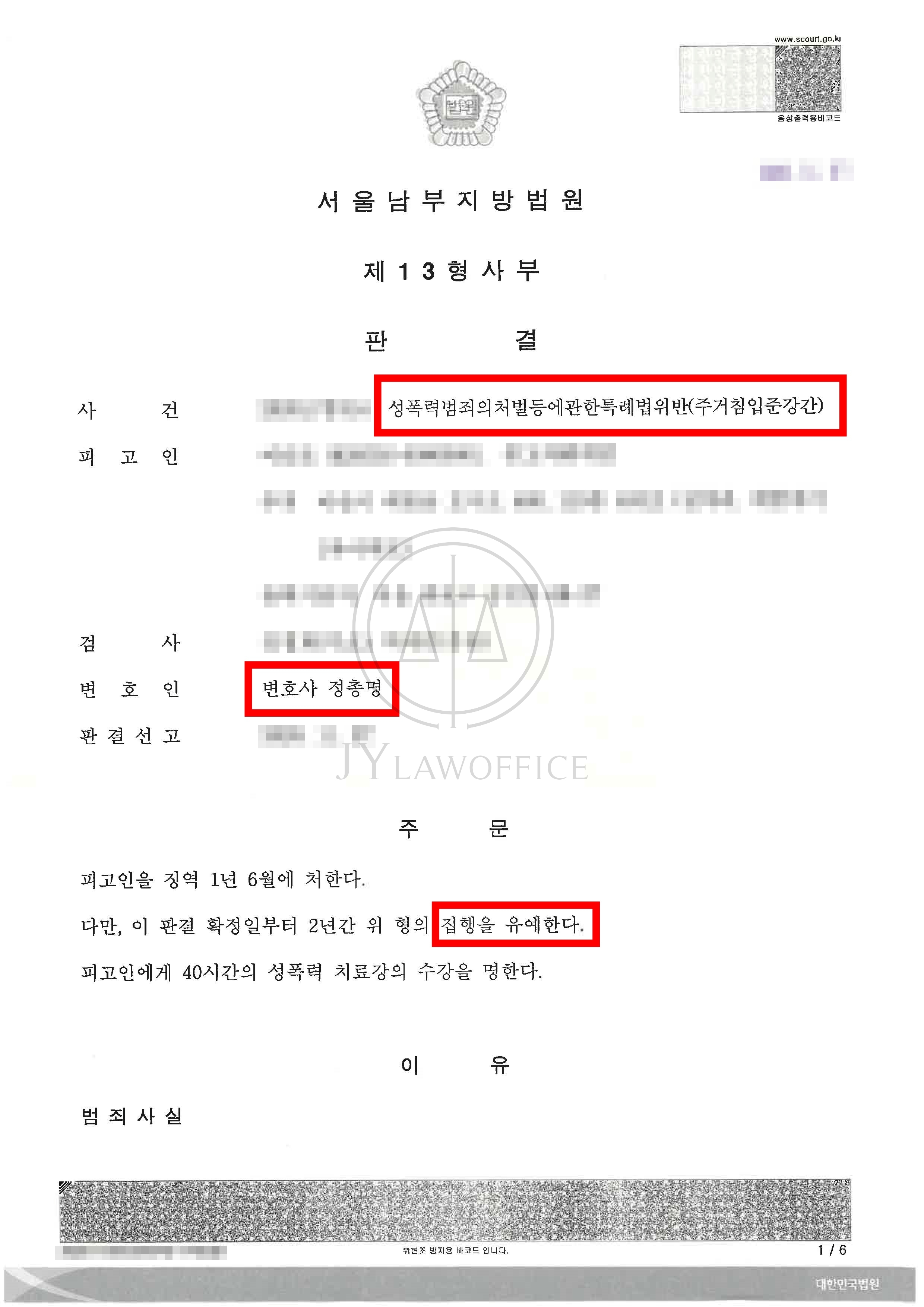 아청법위반죄(아청물소지) - 집행유예성범죄[성공사례] 아청법위반죄(아청물소지) - 집행유예 1. 사건개요 이 사건의 의뢰인은 어느 날 채팅 어플을 통해 개인이 판매하는 아동·청소년 성착취물을 구매하였습니다. 그로부터 얼마 뒤에 사이버수사대로부터 아동·청소년의성보호에관한법률위반(음란물소지)의 혐의로 입건되었다는 연락을 받고 경찰 조사를 받게 되었습니다. 한순간의 잘못된 호기심으로 아청음란물을 구매하였던 의뢰인은 크게 당황하여, 성범죄전문변호사의 조력을 받기 위해 본JY법률사무소에 사건을 의뢰하게 되었습니다. 2. 사건의 특징 아청법위반죄(아청물소지)는 성인의 지속적인 보호가 필요한 미성숙한 아동·청소년을 대상으로 하는 범죄이기 때문에,단순히 아동·청소년음란물을 소지하였다고 하더라도 벌금형 없이 1년 이상의 징역의 처벌을 받을 수 있는 중대한 범죄입니다. 최근 아동청소년음란물로 인한 성범죄가 심각한 사회적 문제로 떠오르면서, 실제로디지털성범죄에 대한 처벌로 실형이 선고되거나, 무거운 보안처분이 내려지는 사례가 증가하고 있습니다. 이 사건의 의뢰인 역시 미성년자가 출연하는 영상물을 구매하였기에, 자칫 잘못하면 징역형의 처벌을 받을 수도 있는 위험한 상황이었습니다. 3. 변호인의 조력 ▷ 사건 진행 상황 체크 및 신속한 대응 수사기관과의 꾸준한 커뮤니케이션으로수시로 진행 상황에 대해 체크하고 사건의 경위를 파악하는 것에 주력하였습니다. ▷ 경찰조사부터 재판까지 동행 및 예상 질문과 답변 피드백 v. 성범죄에 있어서 ‘진술의 일관성’은 매우 중요합니다. 초기 진술을 잘못한다면 진술을 번복하기도 어렵고, 사건 결과에 큰 영향을 줄 수 있습니다. 본 변호인은 이러한 점을 의뢰인에게 알려 주며, 진술 시 의뢰인에게 유리한 답변을 할 수 있도록 자세하게 안내하였습니다. v. 또한, 본 변호인은 경찰 조사부터 재판까지 동행하여 의뢰인이 두려움 없이 당황하지 않고 편안한 상태에서 조사와 재판을 마칠 수 있도록 조력하였습니다. ▷ 양형자료 수집 및 제출 실형을 피하고 처벌의 수위를 낮추기 위해서는 의뢰인이 진심으로 깊이 반성하고 있다는 사실과 재범의 여지가 없음을 설득시켜야 하며, 이러한 설득의 과정은 결코 쉽지 않습니다. 범죄의 특성, 양형기준, 참작할 만한 사유 등 여러 가지를 고려해야 하며, 때문에 반성문 하나 작성하는 일도 이러한 특성을 잘 알고 있는 전문가의 조언이 필요합니다. 본 변호인은 수많은 형사사건을 해결한 경험을 바탕으로 이러한 과정을 통해 ▲ 의뢰인이 범행을 인정하고 깊이 반성하고 있는 점, ▲ 형사처벌 전력이 없는 초범인 점, ▲ 아동ㆍ청소년 이용 음란물임을 확인한 후 단기간에 삭제한 점 등 의뢰인에게 유리한 양형자료를 수집하여 재범의 여지가 없음을 적극적으로 피력하였습니다. 4. 결과 이와 같은 변호인의 노력에 따라, 의뢰인은집행유예처분을 받고 사건을 종결시킬 수 있었습니다. 5. 처벌수위 ▷ 1년 이상의 징역 아동ㆍ청소년의 성보호에 관한 법률 제11조(아동ㆍ청소년성착취물의 제작ㆍ배포 등) ... ⑤ 아동ㆍ청소년성착취물을 구입하거나 아동ㆍ청소년성착취물임을 알면서 이를 소지ㆍ시청한 자는 1년 이상의 징역에 처한다. ...▷ 신상정보등록 성폭력범죄의 처벌 등에 관한 특례법 제42조(신상정보 등록대상자) ① 제2조제1항제3호ㆍ제4호, 같은 조 제2항(제1항제3호ㆍ제4호에 한정한다), 제3조부터제15조까지의 범죄 및 「아동ㆍ청소년의 성보호에 관한 법률」 제2조제2호가목ㆍ라목의 범죄(이하 "등록대상 성범죄"라 한다)로유죄판결이나약식명령이 확정된 자 또는 같은 법 제49조제1항제4호에 따라 공개명령이 확정된 자는 신상정보 등록대상자(이하 "등록대상자"라 한다)가 된다.다만, 제12조ㆍ제13조의 범죄 및 「아동ㆍ청소년의 성보호에 관한 법률」 제11조제3항 및 제5항의 범죄로 벌금형을 선고받은 자는 제외한다. ▷ 신상정보공개 아동ㆍ청소년의 성보호에 관한 법률 제49조(등록정보의 공개) ① 법원은 다음 각 호의 어느 하나에 해당하는 자에 대하여 판결로 제4항의 공개정보를「성폭력범죄의 처벌 등에 관한 특례법」 제45조제1항의 등록기간 동안정보통신망을 이용하여 공개하도록 하는 명령(이하 "공개명령"이라 한다)을 등록대상사건의 판결과 동시에 선고하여야 한다.다만, 피고인이 아동ㆍ청소년인 경우, 그 밖에 신상정보를 공개하여서는 아니 될 특별한 사정이 있다고 판단하는 경우에는그러하지 아니하다. 1. 아동ㆍ청소년대상 성폭력범죄를 저지른 자 2. 「성폭력범죄의 처벌 등에 관한 특례법」 제2조제1항제3호ㆍ제4호, 같은 조 제2항(제1항제3호ㆍ제4호에 한정한다),제3조부터 제15조까지의 범죄를 저지른 자 ▷ 신상정보고지 아동ㆍ청소년의 성보호에 관한 법률 제50조(등록정보의 고지) ① 법원은 공개대상자 중 다음 각 호의 어느 하나에 해당하는 자에 대하여 판결로 제49조에따른 공개명령 기간 동안제4항에 따른 고지정보를 제5항에 규정된 사람에 대하여 고지하도록 하는 명령(이하 "고지명령"이라 한다)을등록대상 성범죄 사건의 판결과 동시에 