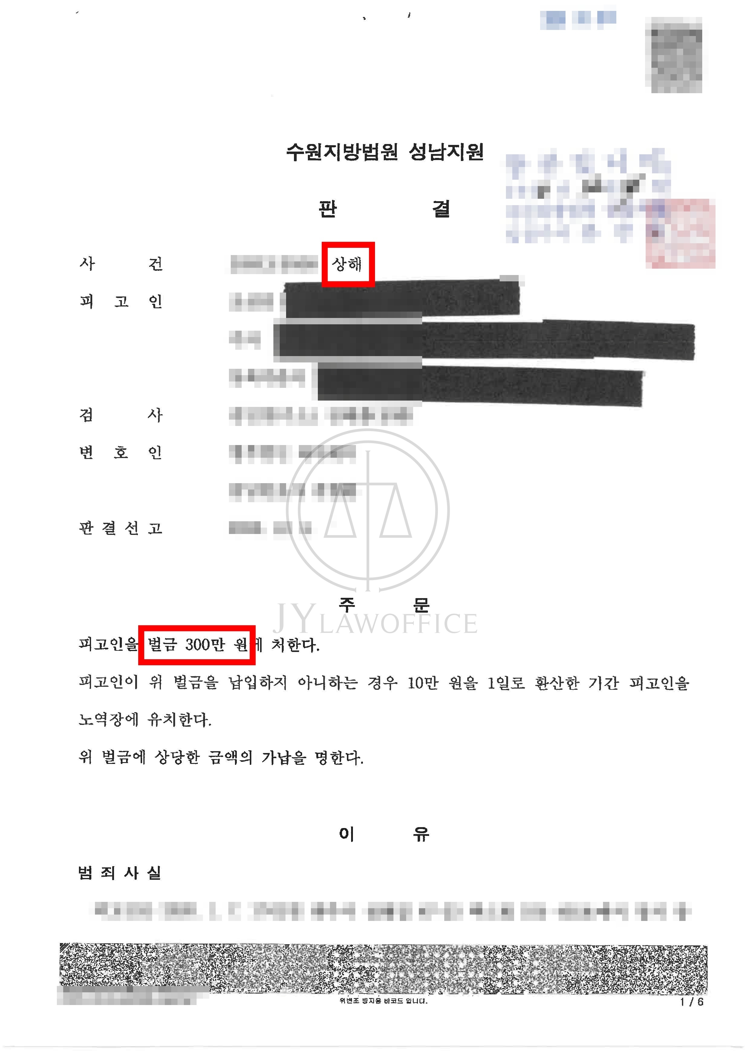 특수상해 - 기소유예형사[성공사례] 특수상해 - 기소유예 1. 사건개요 이 사건의 의뢰인과 피해자는 평소 알고 지내던 친구 사이였습니다. 그러던 어느 날, 주점에서 함께 대화를 하던 중 피해자가 의뢰인에게 성희롱을 하였고, 이에 화가 난 의뢰인은 주변에 있던 물건을 피해자에게 휘두르고 말았습니다. 결국 상대방의 신고로 의뢰인은 특수상해의 혐의를 받게 되었고, 처음으로 형사사건에 연루되자 불안한 마음으로 본JY법률사무소에 도움을 요청하였습니다. 2. 사건의 특징 흉기 혹은 위험한 물건을 들고 폭행을 하는 것은 결코 가볍지 않은 범죄이고, 법무부에서는 이를 1년 이상 10년 이하의 징역의 수위로 엄중하게 처벌하고 있습니다. 이 사건의 피해자는 ‘의뢰인이 흉기를 들고 자신을 폭행하였다’라고 주장하고 있었기에 의뢰인이 처벌을 피하기 위한 자료를 수집하는 것이 중요한 사건이었습니다. 3. 변호인의 조력 ▷ 경찰조사 참여 및 예상되는 질문 사항과 답변 피드백 경찰조사에서 피의자의 첫 진술은 추후 다시 번복이 어려울 뿐만 아니라, 사건의 처분에 큰 영향을 미칠 수 있습니다. 하지만, 형사사건의 절차와 법률에 대한 지식이 없는 일반인은 자신에게 유리하게 작용할 수 있는 진술과 불리하게 작용될 수 있는 진술을 제대로 구별할 수 없을 것이며, 처벌받을 수 있다는 두려움을 안고 진행하는 조사에서 사건을 원하는 방향으로 이끄는 진술을 하기란 매우 어려울 것입니다. 이에 본 변호인은첫 조사부터 의뢰인과 동행하여 의뢰인을 밀착 변호하였으며, 의뢰인의 진술이 의뢰인에게 유리하게 작용할 수 있도록 조사에서 예상되는 질문 사항과 답변을 준비하여 의뢰인이 조사를 무사히 마칠 수 있도록 최선을 다해 조력하였습니다. ▷ 피해자와의 합의 성사 피해자와의 '합의' 여부에 따라 사건의 처분이 달라질 수 있을 만큼 피해자와의 '합의'는 엄벌을 피하기 위해 굉장히 중요한 요소로 작용하므로,본 변호인은 상황을 더 악화시키지 않고 의뢰인을 대신해 피해자와 합의를 진행, 피해자를 설득하여 원만히 '합의'할 수 있었습니다. ▷ 수집한 양형자료를 토대로 변호인 의견 주장 및 제출 처벌의 수위를 낮추기 위해서는 의뢰인에게 재범의 여지가 없음을 설득시켜야 하며, 이러한 설득의 과정은 결코 쉽지 않습니다. 범죄의 특성, 양형기준, 참작할 만한 사유 등 여러 가지를 고려해야 하며, 때문에 반성문 하나 작성하는 일도 이러한 특성을 잘 알고 있는 전문가의 조언이 필요합니다. 본 변호인은 수많은 형사사건을 해결한 경험을 바탕으로 이러한 과정을 통해 ▲ 피해자와 합의되어 피해자가 의뢰인에 대한 처벌을 원하지 않는 점, ▲ 의뢰인이 자백하고 반성하고 있으며 초범인 점, ▲ 피해자의 성희롱으로 인해 생긴 범행인 점 등 의뢰인에게 유리한 양형자료를 수집하고, 이를 토대로 의뢰인의 선처를 적극적으로 피력하였습니다. 4. 결과 이와 같은 변호인의 노력에 따라, 의뢰인은 어떠한 처벌 없이기소유예처분을 받고 사건을 종결시킬 수 있었습니다. 5. 처벌수위 ▷ 1년 이상 10년 이하의 징역 형법 제258조의2(특수상해) ① 단체 또는 다중의 위력을 보이거나 위험한 물건을 휴대하여 제257조제1항 또는 제2항의 죄를 범한 때에는1년 이상 10년 이하의 징역에 처한다. ...2021-06-25 -