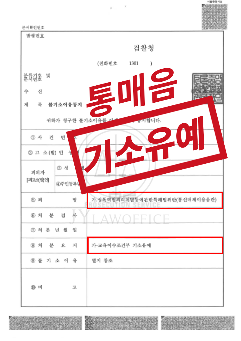 통매음 - 기소유예성범죄[성공사례] 통매음 - 기소유예 1. 통매음 사건 개요 의뢰인은 모바일 채팅 애플리케이션을 통해 피해자에게 성적 수치심을 유발하는 사진과 메시지를 전송한 혐의로 수사를 받게 되었습니다. 이에 의뢰인은 통매음, 즉 통신매체이용음란죄로 경찰 조사를 앞두게 되자, 형사 처벌에 대한 두려움을 안고 통매음 전문 변호사의 조력을 받기 위해 본 JY법률사무소를 찾아주셨습니다. 2. 통매음 사건 특징 통매음, 즉 통신매체이용음란죄는 "자기 또는 다른 사람의 성적 욕망을 유발하거나 만족시킬 목적으로 전화, 우편, 컴퓨터, 그 밖의 통신매체를 통하여 성적 수치심이나 혐오감을 일으키는 말, 음향, 글, 그림, 영상 또는 물건을 상대방에게 도달하게 한 사람"을 처벌하는 규정입니다. 법정형은 2년 이하의 징역 또는 2천만 원 이하의 벌금으로 유죄가 확정되면 신상정보 등록, 공개, 고지 등의 성범죄 보안처분도 뒤따를 수 있어 결코 가볍지 않은 처벌이 내려질 수 있습니다. 통매음은 직접적인 신체 접촉이 없더라도 피해자의 성적 자유를 침해하고 왜곡된 성문화를 강화할 가능성이 있으므로 수사기관 및 법원에서는 이에 대해 엄중한 처벌을 내리고 있습니다. 특히, 본 사건은 범행이 수회 이루어졌으며, 내용에 비추어 보았을 때 사안이 결코 가볍지 아니하여 실형 가능성도 배제할 수 없었고, 성범죄로 기록이 남을 경우 의뢰인의 직장 및 사회생활에 치명적인 불이익이 우려되었습니다. 3. 통매음 전문 변호사의 조력 ▷ 사건 경위 및 사실 관계 법리적 검토 초기 조사 단계에서부터 본 변호인은 수사기록 열람을 통해 통매음 고소장의 내용을 법리적으로 분석하였고, 사건의 경위 및 사실관계를 면밀히 검토하는 한편, 의뢰인의 처벌 수위를 낮출 수 있는 양형자료를 다각도로 준비하였습니다. ▷ 피해자의 처벌불원서 확보 의뢰인의 피해 회복 노력은 양형 참작 요소로 중요하게 작용할 수 있기에 본 변호인은 의뢰인을 대신하여 피해자와 원만한 합의를 시도하였습니다. 합의 과정에서 합의금이 과도하게 측정되지 않도록 조율하는 등 합의를 원만히 성사시키기 위해 노력한 결과 본 변호인은 의뢰인과의 합의를 성사시키며 피해자의 처벌불원서를 확보할 수 있었습니다. ▷ 조사 준비 및 동행 경찰 조사에서의 초기 진술은 사건 처분에 매우 중대한 영향을 미칠 수 있으므로 철저한 사전 준비가 필수적입니다. 이에 본 변호인은 의뢰인의 진술이 왜곡되거나 불리하게 기록되지 않도록 철저한 사전 준비를 마치고 조사에도 함께 출석하여 대응하였습니다. ▷ 설득력 있는 선처 의견서 제출 본 변호인은 의뢰인의 상황에서 최대한 처벌을 감경받을 수 있는 양형 자료를 준비하여 ▲ 의뢰인은 형사 처벌의 이력이 없는 초범인 점 ▲ 의뢰인은 피해자와 합의하였고, 피해자는 의뢰인의 처벌을 원치 않는 점 ▲ 의뢰인은 잘못을 뉘우치고 재범하지 않을 것을 다짐한 점 등을 강조하는 선처 의견서를 제출하며 의뢰인의 선처를 적극적으로 피력하였습니다. 4. 결과 이와 같은 통매음 전문 변호사의 조력에 따라, 의뢰인은 통매음(통신매체이용음란죄) 혐의를 받았지만, 기소유예의 불기소 처분을 받고 무사히 사건을 종결시킬 수 있었습니다. 5. 처벌 수위 ▶성폭력범죄의 처벌 등에 관한 특례법 제13조(통신매체를 이용한 음란행위) 자기 또는 다른 사람의 성적 욕망을 유발하거나 만족시킬 목적으로 전화, 우편, 컴퓨터, 그 밖의 통신매체를 통하여 성적 수치심이나 혐오감을 일으키는 말, 음향, 글, 그림, 영상 또는 물건을 상대방에게 도달하게 한 사람은 2년 이하의 징역 또는 2천만원 이하의 벌금에 처한다. ▷ 신상정보등록 성폭력범죄의 처벌 등에 관한 특례법 제42조(신상정보 등록대상자) ① 제2조제1항제3호ㆍ제4호, 같은 조 제2항(제1항제3호ㆍ제4호에 한정한다), 제3조부터 제15조까지의 범죄 및 「아동ㆍ청소년의 성보호에 관한 법률」 제2조제2호가목ㆍ라목의 범죄(이하 "등록대상 성범죄"라 한다)로 유죄판결이나 약식명령이 확정된 자 또는 같은 법 제49조제1항제4호에 따라 공개명령이 확정된 자는 신상정보 등록대상자(이하 "등록대상자"라 한다)가 된다. 다만, 제12조ㆍ제13조의 범죄 및 「아동ㆍ청소년의 성보호에 관한 법률」 제11조제3항 및 제5항의 범죄로 벌금형을 선고받은 자는 제외한다. ▷ 신상정보공개 아동ㆍ청소년의 성보호에 관한 법률 제49조(등록정보의 공개) ① 법원은 다음 각 호의 어느 하나에 해당하는 자에 대하여 판결로 제4항의 공개정보를「성폭력범죄의 처벌 등에 관한 특례법」 제45조제1항의 등록기간 동안 정보통신망을 이용하여 공개하도록 하는 명령(이하 "공개명령"이라 한다)을 등록대상 사건의 판결과 동시에 선고하여야 한다. 다만, 피고인이 아동ㆍ청소년인 경우, 그 밖에 신상정보를 공개하여서는 아니 될 특별한 사정이 있다고 판단하는 경우에는 그러하지 아니하다. 1. 아동ㆍ청소년대상 성폭력범죄를 저지른 자 2. 「성폭력범죄의 처벌 등에 관한 특례법」 제2조제1항제3호ㆍ제4호, 같은 조 제2항(제1항제3호ㆍ제4호에 한정한다), 제3조부터 제15조까지의 범죄를